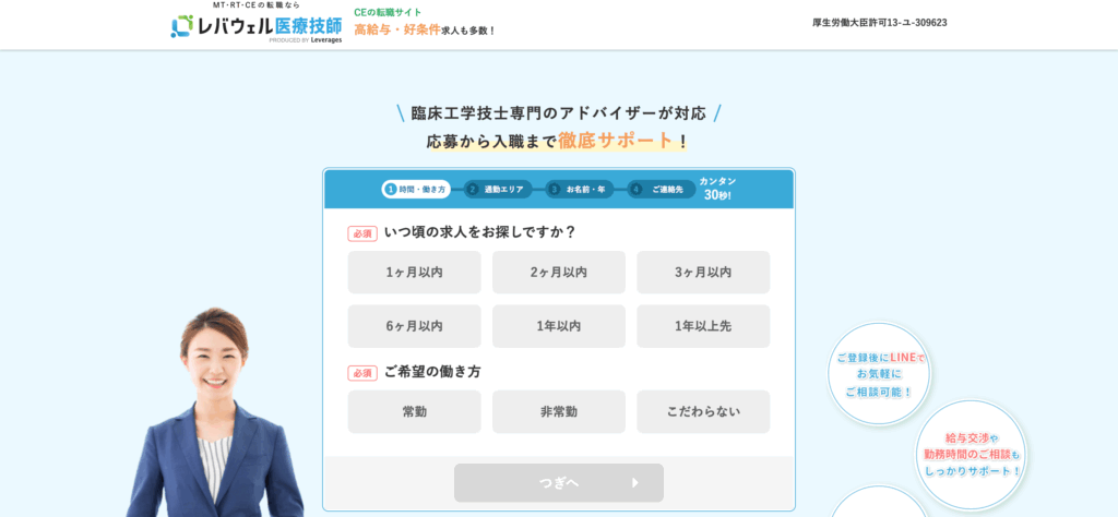 レバウェル医療技師は、医療従事者に特化した転職支援サービスです。